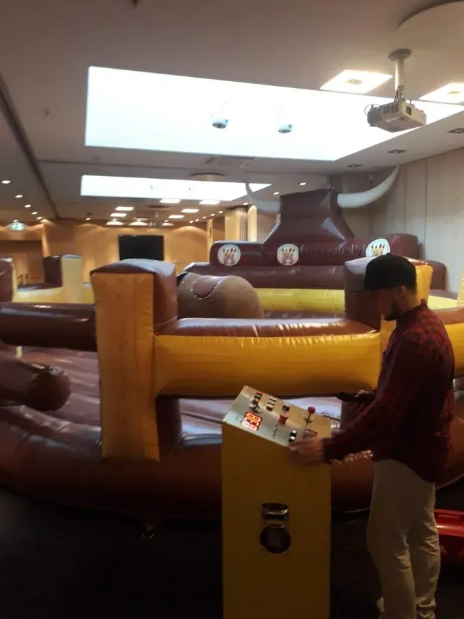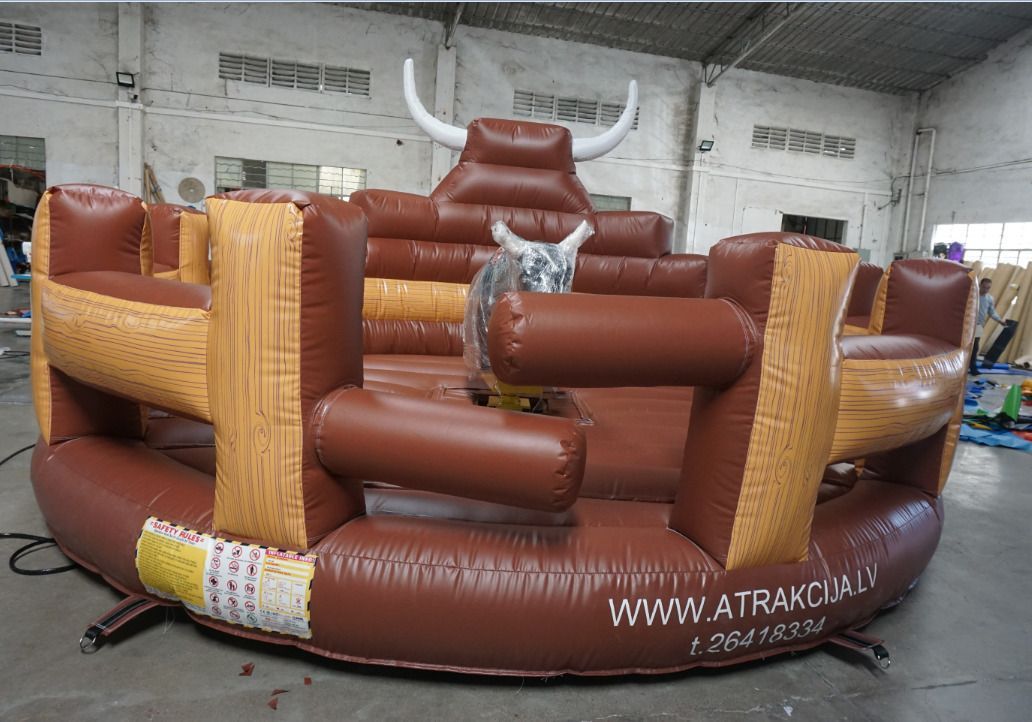 - Rodeo simulatora komplektācijā ietilpst mehānisks bullis, piepūšama amortizējoša pamatne, kas pasargās no traumām.